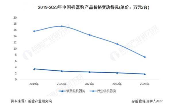 从机械狗产物价钱来看,2019-2023年,机械狗产物市场价钱全体有所下降,2023年,我国消费级机械狗均价约1。82万元/台。