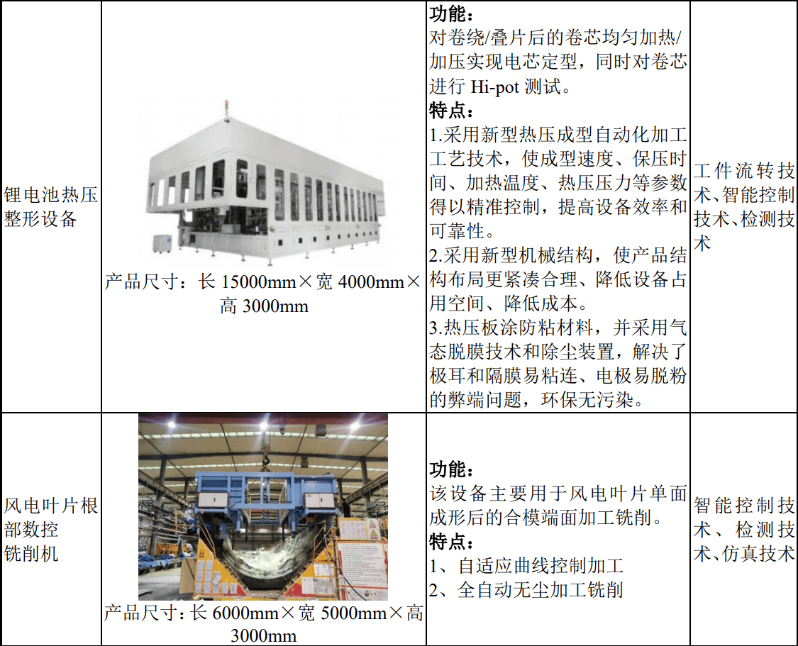 除了上述两类次要设备外,公司还有使用于固废范畴的破裂设备、锂电范畴的热压整形设备和风电范畴的叶片铣削设备,