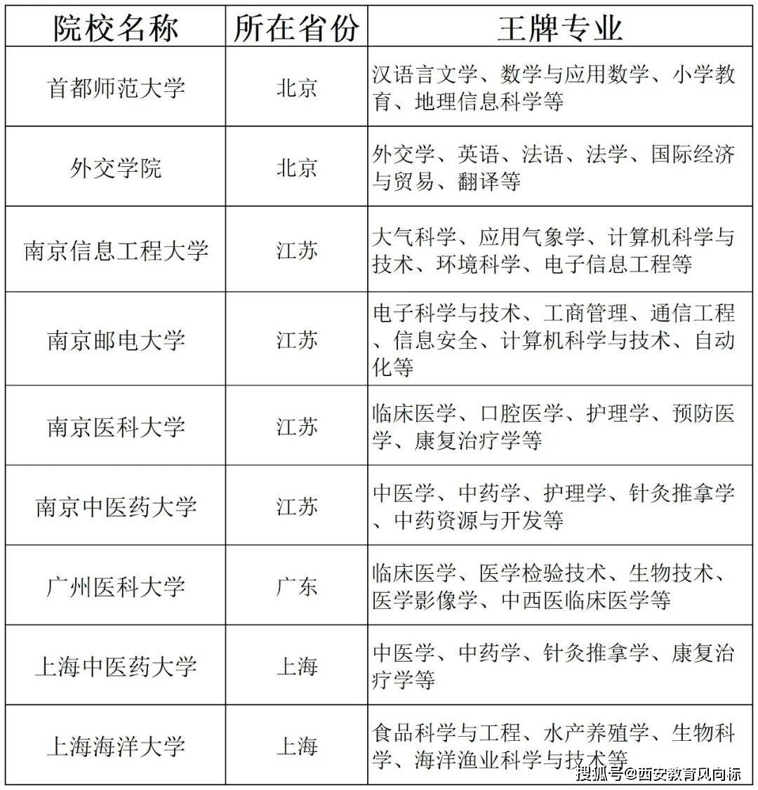 首都师范大学、交际学院、南京消息工程大学、南京邮电大学、南京西医药大学、上海海洋大学、上海西医药大学、南京医科大学、广州医科大学纯双一流大学的“第一梯队”,皆位于经济发财地域,正在本省市备受关心,且由于行业特色,将来就业前景优良。