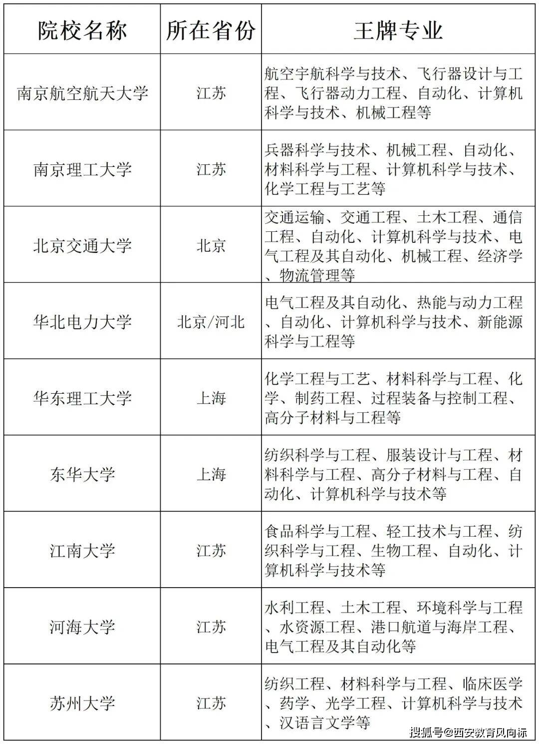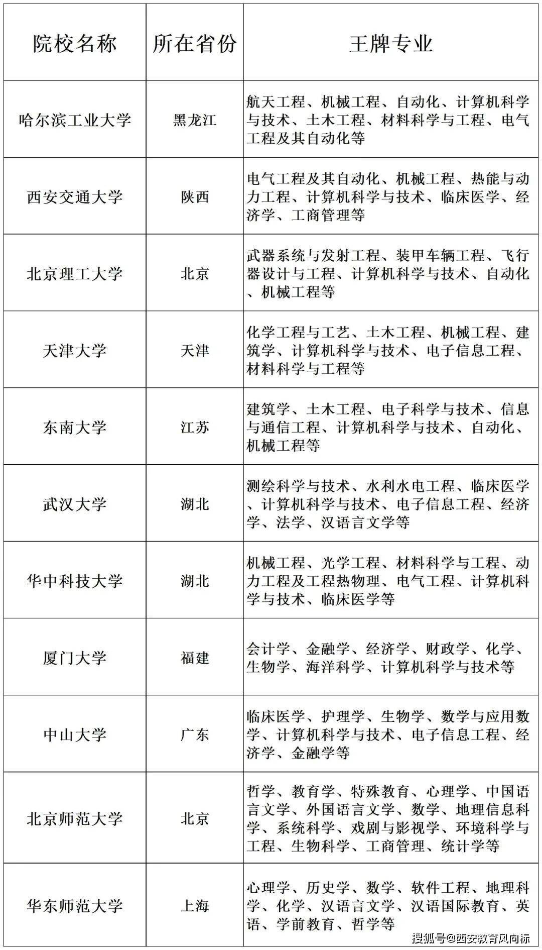工业大学、理工大学、、西安交通大学、东南大学、华中科技大学、武汉大学、厦门大学、中山大学、师范大学、华东师范大学中坚九校都是办学实力强劲的工科或分析类院校,全体程度相差不大,北理工因为有地处的优胜区位,其分数线还要略高于其他院校一些,别的各校之间的沉点焦点专业也都有所分歧。哈工大的工学类学科排名全国第四,航天范畴也劣势凸起,且具有军工布景;西安交大的电气工程和机械工程类专业均可排进国内前三;北理工是我国第一所国防院校,刀兵工业范畴实力可谓天花板;天大、东南的工科也很强,其结业生根基都成为了各行业里的从力人才;华科则以电器类著称,光电范畴国内第一;武大相对文理平衡,各学科实力都不错,但也都不拔尖。北师大和华东师大都属于师范院校,正在师范类中排名第一第二,不外北师大已逐渐向分析性大学标的目的成长,其心理学专业位居全国第一。