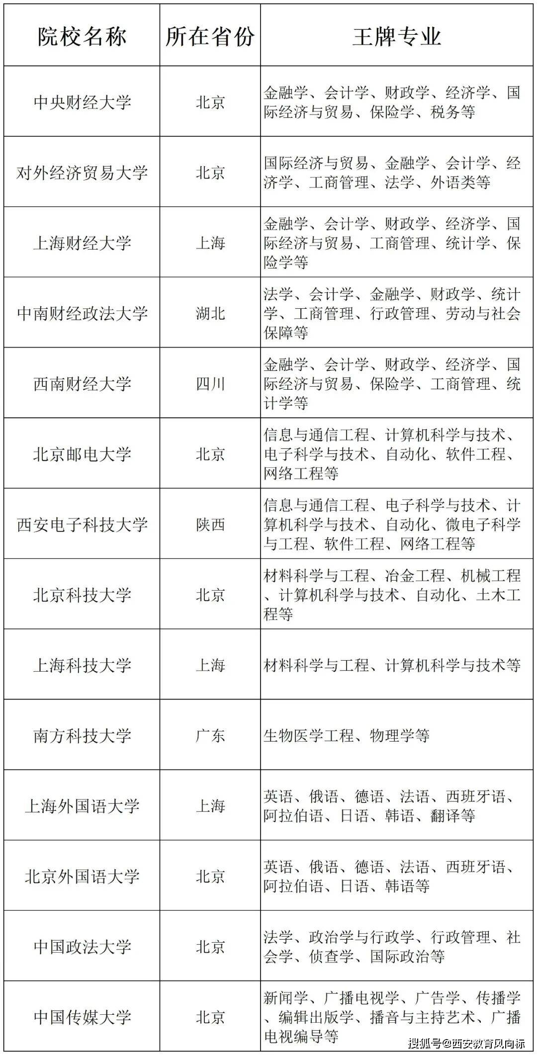 这6所院校正在“985工程”傍边凡是位居末流,不外其各自的强项专业仍具有明显办学特色,虽然全体讲授水准并不出众,或受制于地舆偏僻,因此关心度不高,但劣势学科的分析实力仍然不成小觑,正在全国范畴内皆有必然学术地位。起首是“四财一贸”+“一邮一电”,劣势学科外行业内承认度极高,就业去向都是对标各范畴最好的企业或单元,考研傍边的地位也很是高,是学术深制的抱负方针。第二类是“三科大”,全数位于经济发财的一线城市,地舆优胜,办学布景深挚,校园优秀,将来就业机遇也很是多。特别是上科大取南科大这两所新型研究型大学,现在已遭到越来越多的关心。第三类是“两语一法一传媒”,也属于专业性强的院校,是泛博优良文科生的次要意愿方针,虽不如财经院校那样火热,但行业内的就业承认度也相当之高。