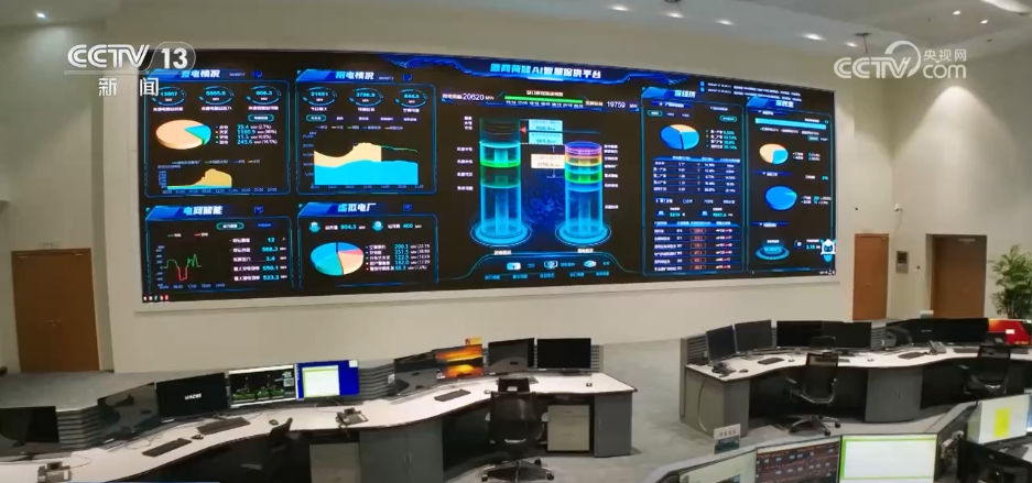 来到电力安排大厅,大屏幕上是各类数据和图表,及时显示出当前全市发电、用电、储能等电网运转的环境。