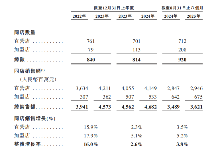 招股书显示,截至最初现实可行日期,老乡鸡的全国门店数曾经达到1777家,包罗969家曲营店和808家加盟店。老乡鸡的大部门门店仍然集中于华东市场,如安徽、江苏、上海等省市,共有门店数1434家,占全数门店的80%以上。数据显示,自2020年加盟以来,老乡鸡加盟门店的比例持续上升,从2022年的10。5%上升至最新的45。5%。同期,根基不再新开,且部门门店转为加盟模式,表现出公司正从曲营转向“曲营+加盟”双轮驱动。招股书还提到,曲营店次要集中于一线城市,而加盟店则快速向低线城市延长。连系其开店动历来看,这申明公司正通过加盟系统加快向下沉市场渗入。比好像店发卖额,从2024年前八个月的34。89亿元增加至客岁同期的36。21元,同比涨幅3。8%,这是公开数据以来该目标持续三年实现正增加。
